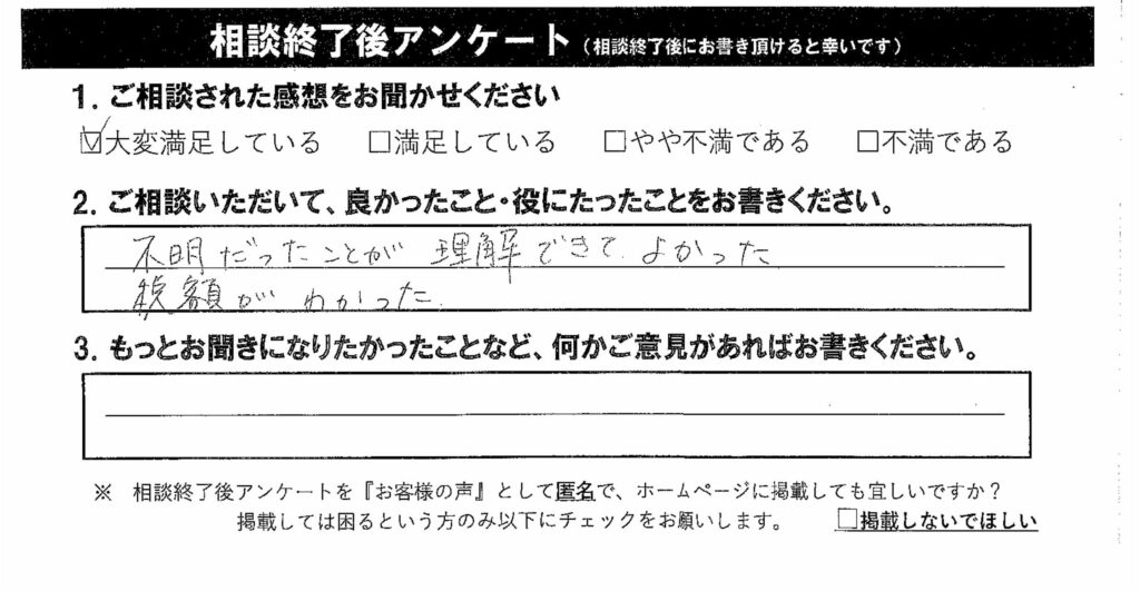 名古屋市 女性(相続税試算・相続税申告手続)税額がわかってよかった